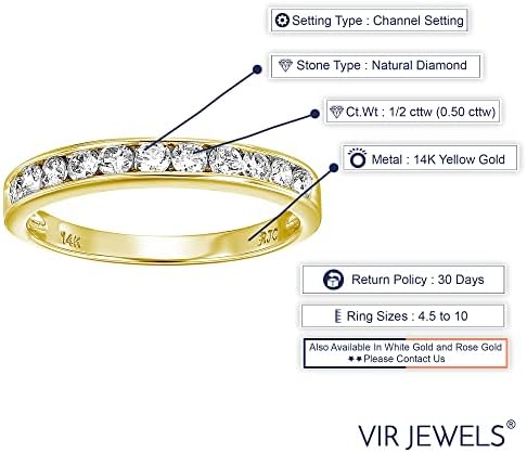 1/2 carat (ctw) Diamond Wedding Anniversary Band for Women, Half Eternity Round Diamond Engagement Ring 14K Yellow Gold Channel Set 0.50 cttw, Size 4.5-10