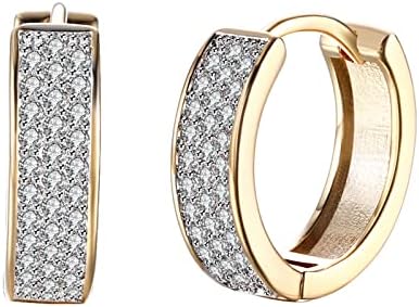 14K Gold Plated Cubic Zirconia Hoop Earrings,Three Row Diamon | Arrows | Double Row of Diamonds Huggie Earrings for Women