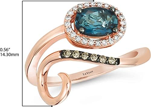 1/8 Carat Diamond and Oval Blue Topaz Bypass Ring for Women in 14k Rose Gold (G-H/Fancy Brown, VS2-SI1, cttw) Anniversary Promise Ring Size 5 to 10.5 by LeVian