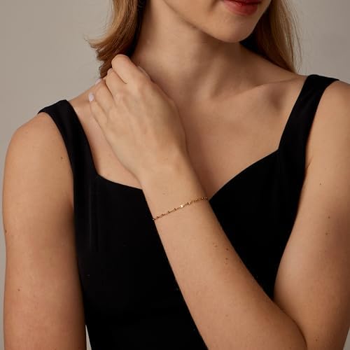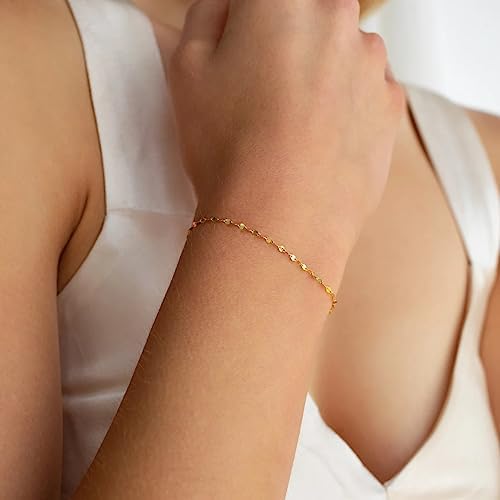 Gold Bracelet for Women Stack 14K Real Gold Plated Bangle Cuff Bracelet Set Gold Beaded Tennis Paperclip Cuban Link Chain Bracelets for Women Trendy Non Tarinish