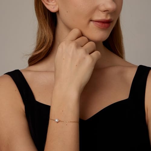 18K Gold Pearl Beaded Chain Bracelets for Women Adjustable Stainless Steel Dainty Thin Gold Box Cuban Twisted Link Chain Bracelet Bridesmaid Jewelry Gifts