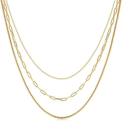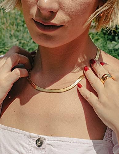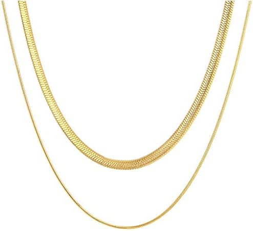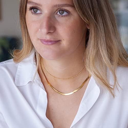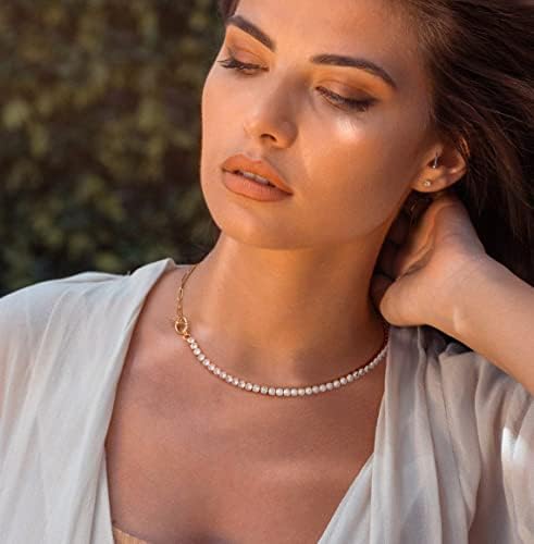 18K Gold Plated Dainty Choker Necklace for Women | Snake Chain, Cuban Link, Paperclip, Ball Beaded Chain, Tennis Chain, Natural Freshwater Pearl Necklace Fashion Jewelry