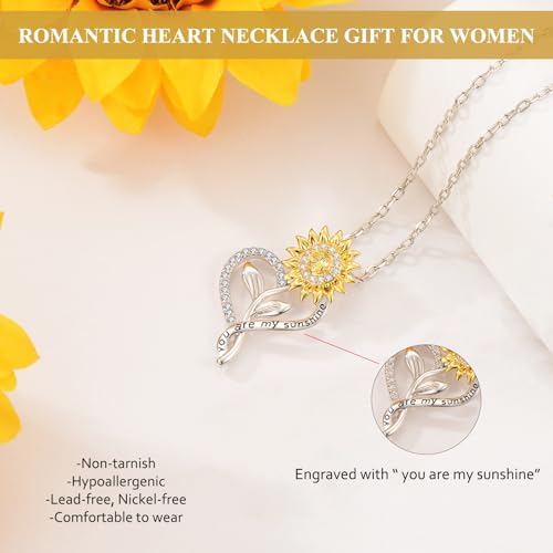 18K Gold Plated Sunflower Necklaces for Women, Sunflower Gifts for Her, Birthday Gift for Wife Valentines Gift Anniversary Girlfriend, Christmas Jewelery Gift for Daughter Mom Mothers Day, You are My