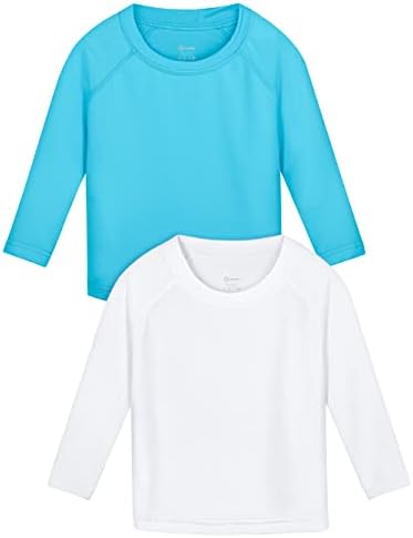 2 Pack Baby and Toddler Boys' UPF 50+ Long-sleeve Rashguards Baby Boy Quick Dry Swim Shirt Toddler Swimwear Surf Tops