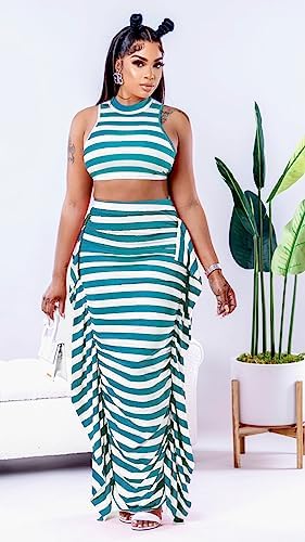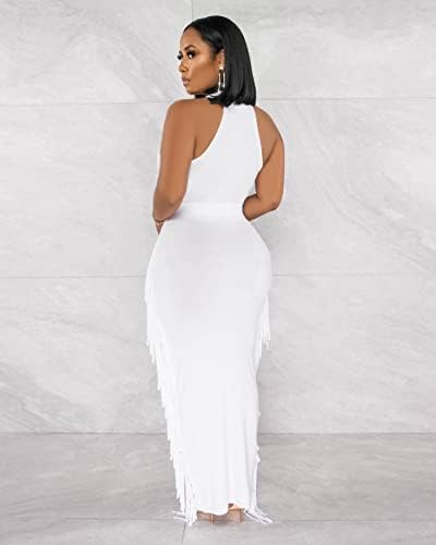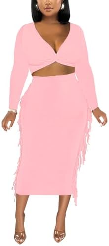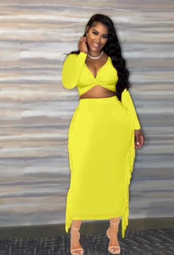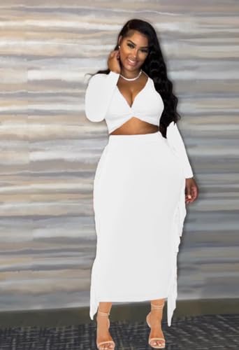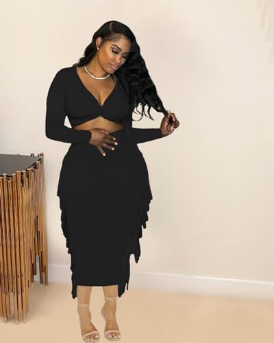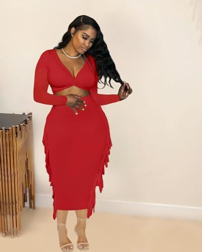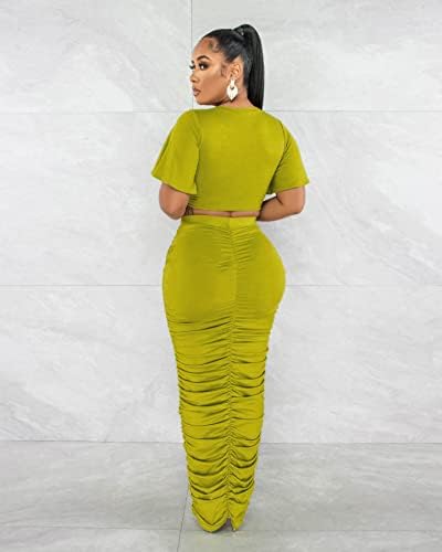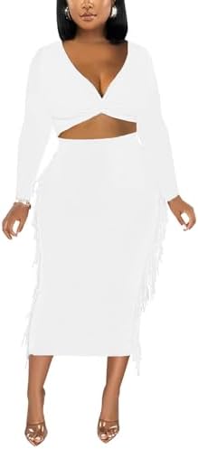 2 Piece Outfits for Women Sexy Crop Top Ruched Bodycon Maxi Dresses Fringe Skirt Sets Night Club Jumpsuits