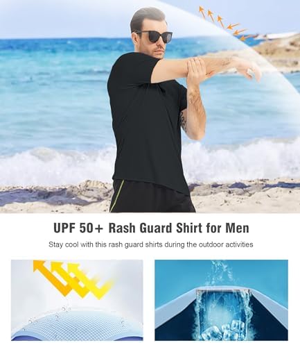 2/4 Pack Men's UPF 50+ Rash Guard Long/Short Sleeves Swim Shirts, Dry Fit Surf Fishing UV Sun Protection Shirts