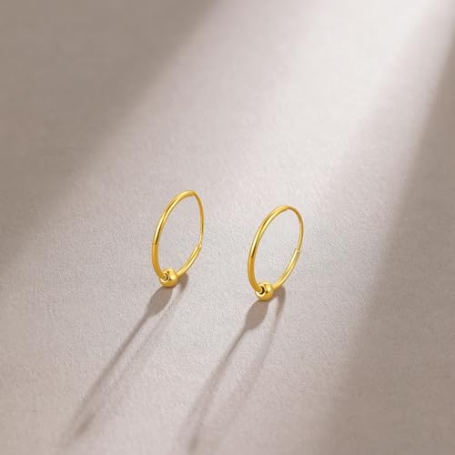24K Gold Earrings for Women Hypoallergenic Hoop Earring Lightweight Beaded Hoops Dangle Small Huggie Drop Bead Statement Jewelry Dainty Ball Fashion Trendy Dangling Tiny Thin Polished Real Gold Gifts