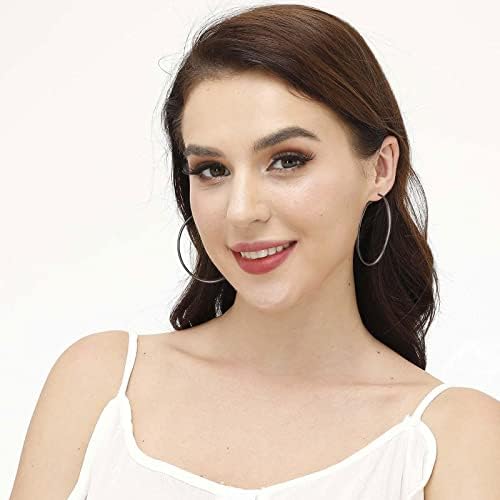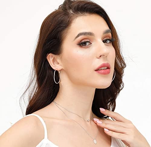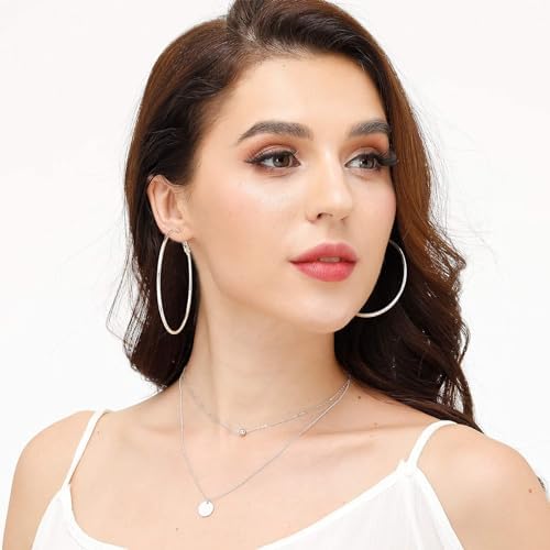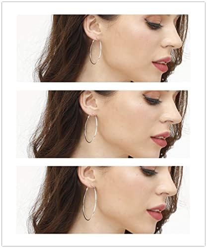 3 Pairs Sterling Silver Hoop Earrings - 14k White Gold Plated Hoop Earrings Big Hoop Earrings Set Silver Hoop Earrings for Women Valentine's Day Gift Jewelry (40MM 50MM 60MM)
