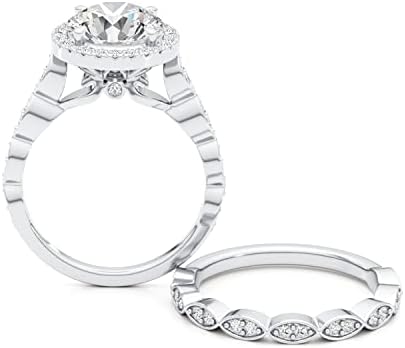 3/4 Carat Lab Grown Diamond and 3 Carat Moissanite Wedding Band Ring Set for Women in 14k White or Yellow Gold Anniversary Promise Ring
