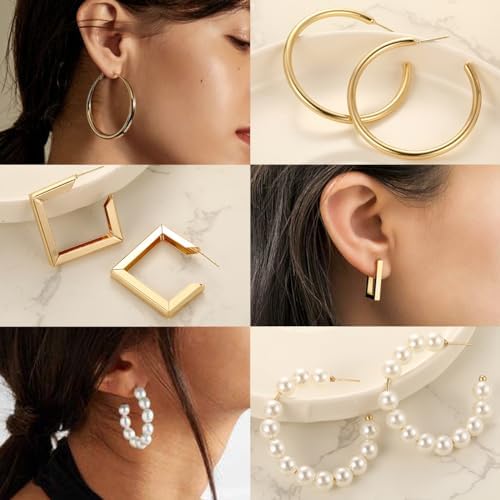 36 Pairs Gold Hoop Earrings Set for Women Multipack, Hypoallergenic Chunky Chain Twisted Hoop Earrings Pack, Fashion Dangle Earrings Jewelry for Gift