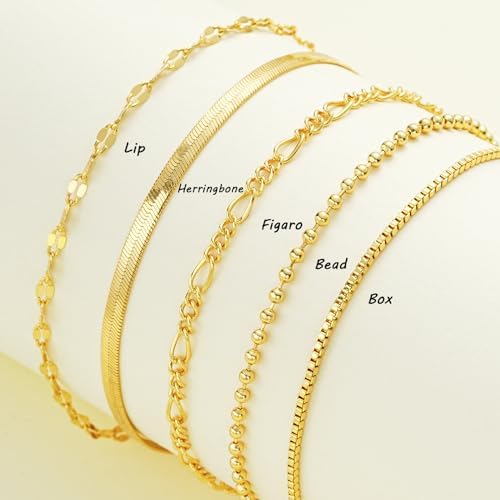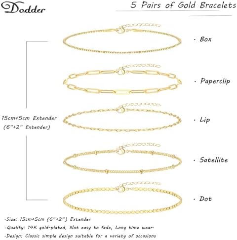 5 Pcs Gold Chain Bracelets Stack Set for Women Trendy, Dainty 14K Gold Plated Satellite Bracelet Adjustable, Thin Paperclip Link Stackable Bracelets for Women