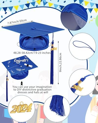 6 Set Preschool Graduation Cap and Gown Set Kindergarten Grad Gowns Children Graduation Cap with 2024 Grad Tassel