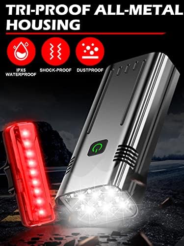 9000 Lumens Bike Lights Front and Back for Night Riding, 5200 mAh USB Rechargeable 6 LED Bicycle Light, 5+5 Modes Bike Headlight and Tail Light Set Runtime 30+ Hrs, IPX5 Waterproof, Power Bank Feature