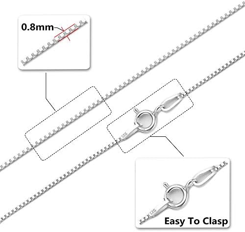 925 Sterling Silver 1mm & 0.8 Italian Box Chain Necklace 16" - 30" with Silver Polishing Cloth/Thin & Strong Necklace for Women Available in 15 Lengths
