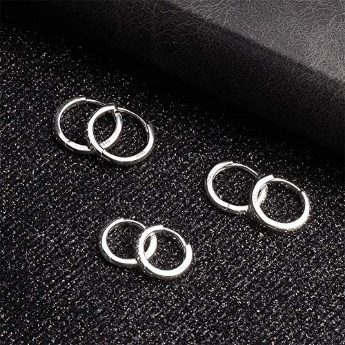 925 Sterling Silver Small Hoop Earrings Cubic Zirconia Huggie Hoop Earrings, 3 Pairs 14K White Gold Plated Cartilage Piercing Earrings Ear Cuff Tiny Hoop Earrings for Women Men