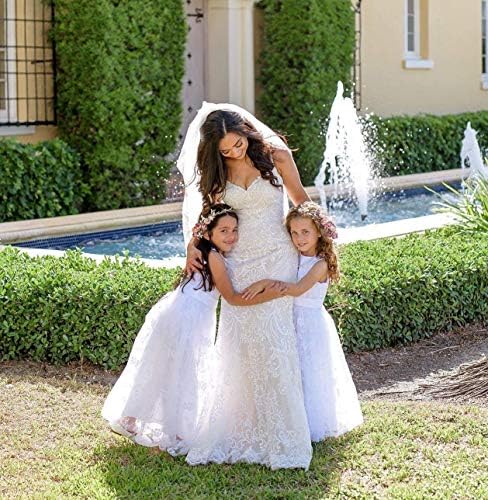 A line Wedding Pageant Lace Flower Girl Dress with Belt 2-12 Year Old