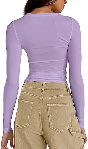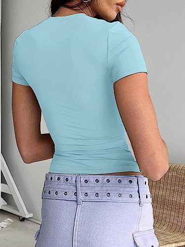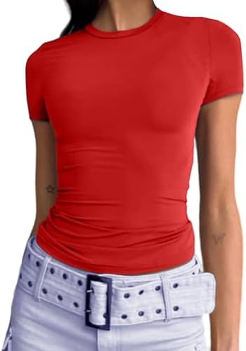 Abardsion Women's Casual Basic Going Out Crop Tops Slim Fit Short Sleeve Crew Neck Tight T Shirts
