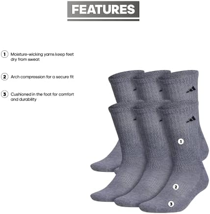 adidas Men's Athletic Cushioned Crew Socks with Arch Compression for a Secure Fit (6-Pair)