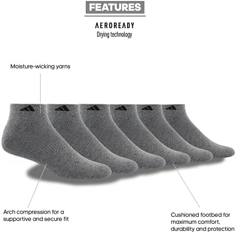 adidas Men's Athletic Cushioned Low Cut Socks with Arch Compression for a Secure Fit (6-Pair)