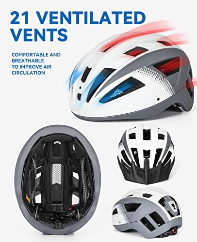 Adult Bike Helmet with Visor and Goggles for Men Women Mountain Road Bicycle Helmet Rechargeable Rear Light Cycling Helmet