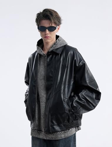Aelfric Eden Mens Faux Leather Varsity Jacket Vintage Racing Leather Jackets Oversized Unisex Streetwear Jacket