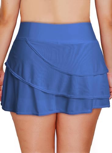 Aleumdr Women's Waistband Layered Swimdress Ruffle Swim Skirt Swimsuit Bottom(Available in Plus)