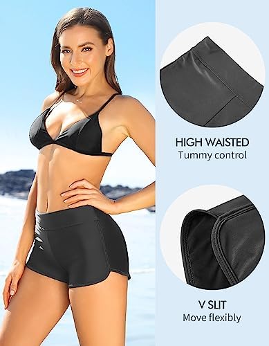 ALove Swim Shorts Womens Stretchy Sporty Bathing Suit Bottoms Side V Slit Boyshorts Swimsuit Board Shorts