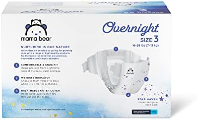 Amazon Brand - Mama Bear Overnight Diapers, Hypoallergenic, Size 6 (54 count), Disposable Baby Diapers, Night Time Protection