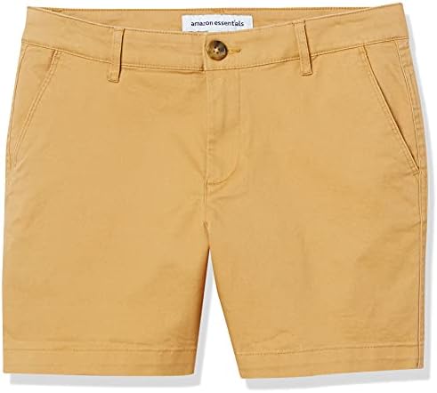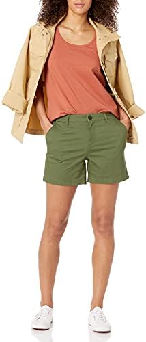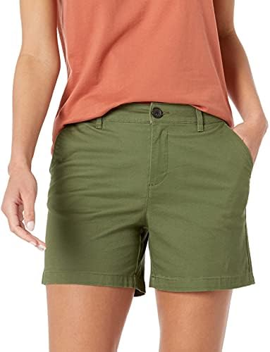 Amazon Essentials Women's Mid-Rise Slim-Fit 5 Inch Inseam Khaki Short (Available in Straight and Curvy Fits)