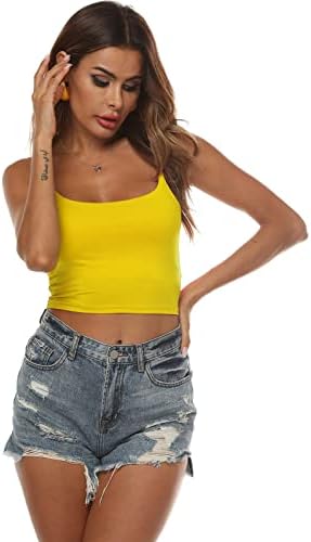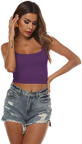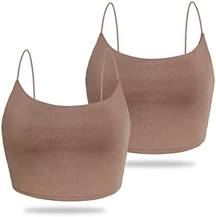 Amilia Women's Basic Solid Cami Spaghetti Double Layer Crop Tank Top