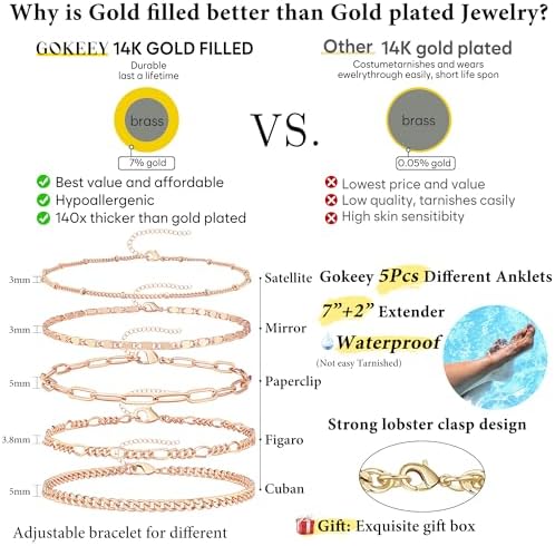Ankle Bracelets for Women, 14k Gold Jewelry Set Waterproof Layered Cuban Figaro Link Chain Anklets Set Gold Anklets Gift Adjustable Size