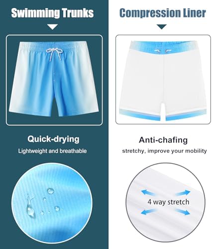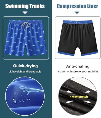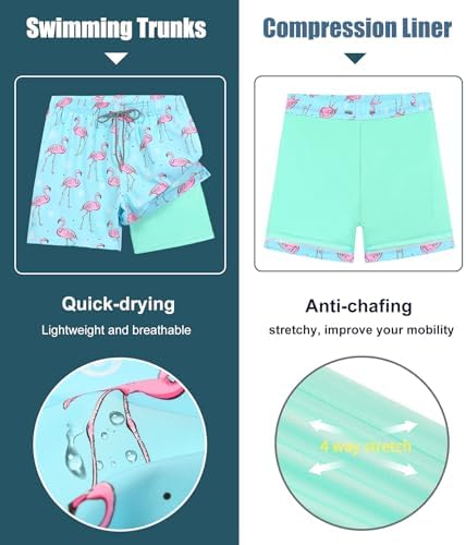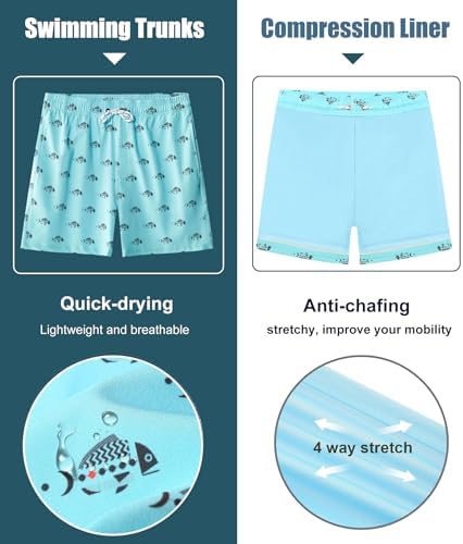 maamgic Boys Swim Trunks with Compression Liner Toddler Boy Swimsuit Quick Dry 4-Way Stretch Swimming Trunks