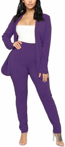 Aro Lora Women's 2 Piece Outfit Casual Solid Open Front Blazer and Pencil Pant Suits Set