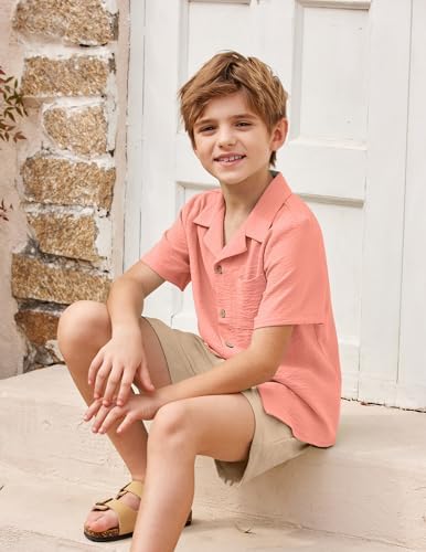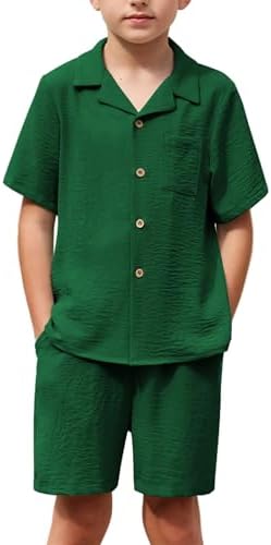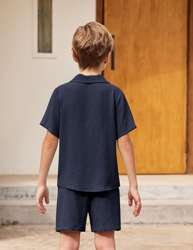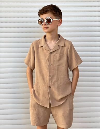 Arshiner Boys 2 Pieces Summer Beach Outfits Short Sleeve Button Down Shirts and Shorts Vacation Texture Sets for Kids