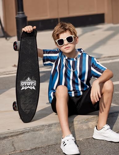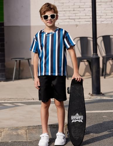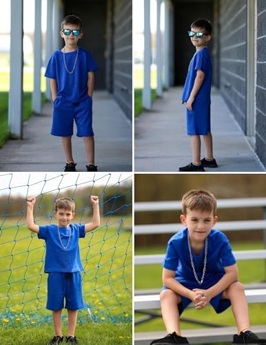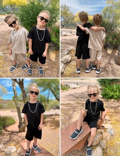 Arshiner Boys Drop Shoulder T-Shirt & Drawstring Waist Shorts with Chain Necklace Summer Casual Outfits (5-12 Years)