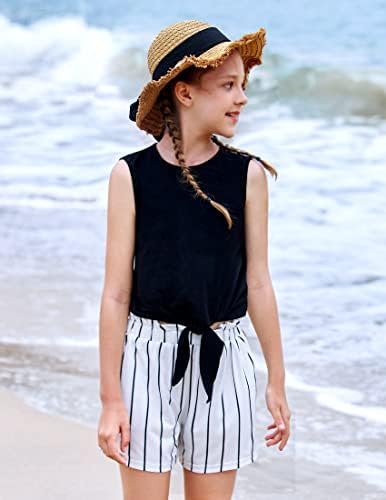 Arshiner Girl's 2 Piece Outfits Summer Tie Knot Tank Top and Paperbag Waist Pocketed Short Sets