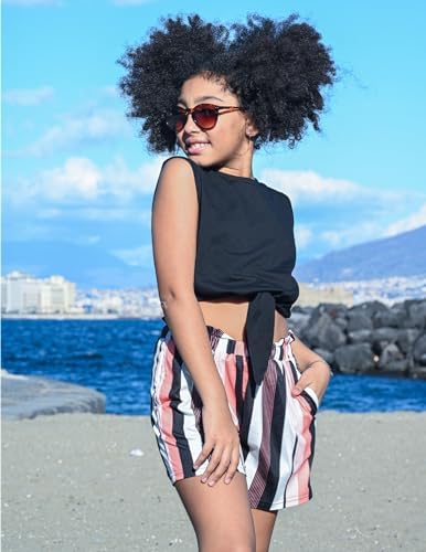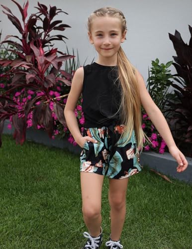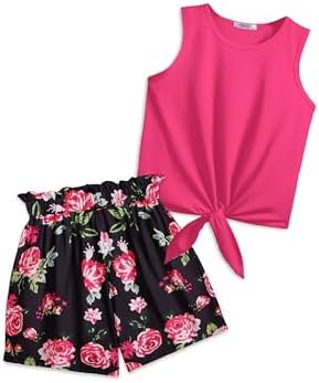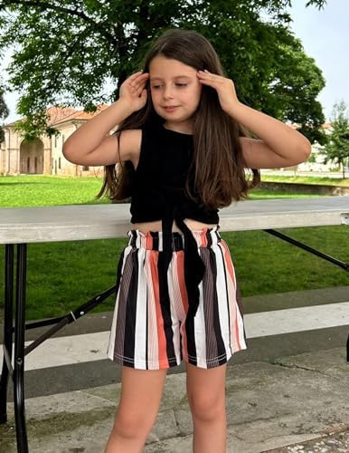 Arshiner Girl's 2 Piece Outfits Tie Knot Tank Top and Paperbag Waist Pocketed Summer Short Sets