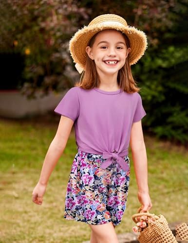 Arshiner Girls Summer Shorts Set Kids 2Pcs Tie Dye Sport T-Shirt and Shorts Set Floral Print Clothing Sets