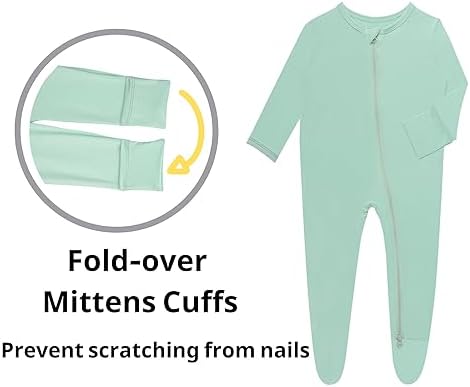 Baby Boy Footed Pajamas with Mittens,Rayon Made from Bamboo Sleepers, 2 Way Zipper Long Sleeve Pjs