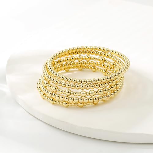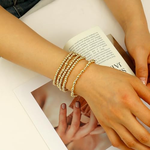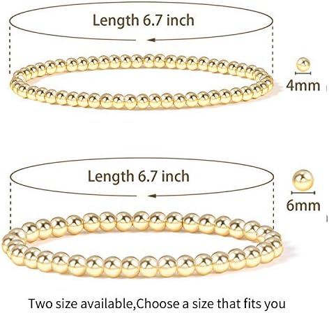 Badu Gold Bead Bracelet for Women 14K Gold Plated Bead Ball Bracelet Stretchable Elastic Hypoallergenic Bohemian Stackable Bracelet