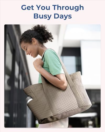 BAGSMART Large Tote Bag For Women, Travel Shoulder Bag Top Handle Handbag with Yoga Mat Buckle for Gym, Work, Travel