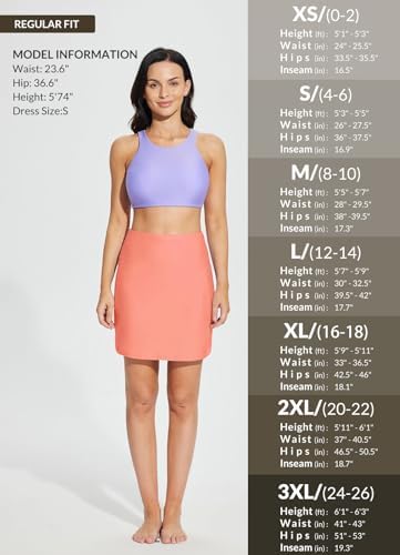 BALEAF Women's 2024 17" Swim Skirt Bottoms High Waisted Modest Bathing Suit Skirt Tummy Control Swim Bottoms