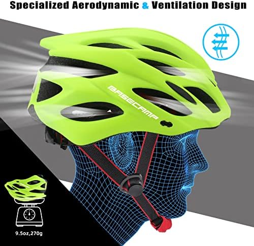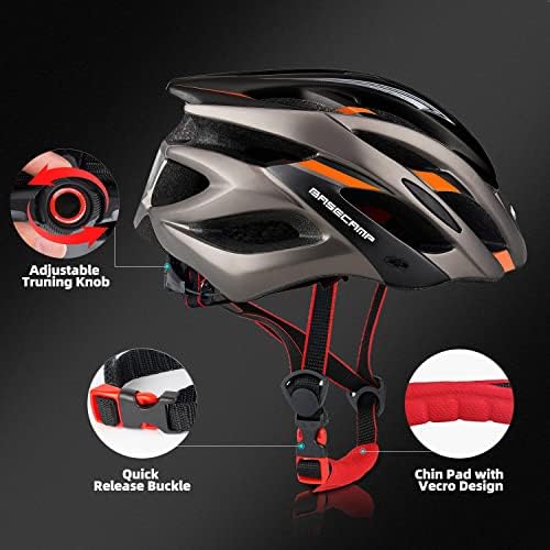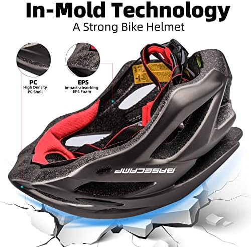 Basecamp Bike Helmet for Men Women with LED Safety Light Removable Sun Visor Lightweight Bicycle Helmet Adjustable Breathable Mountain & Road Cycling Helmets for Adult (BC-10)