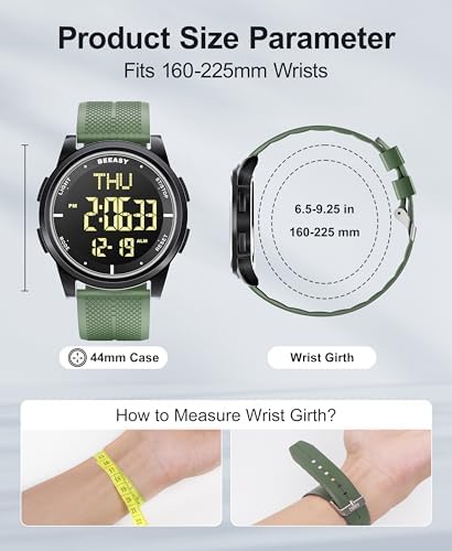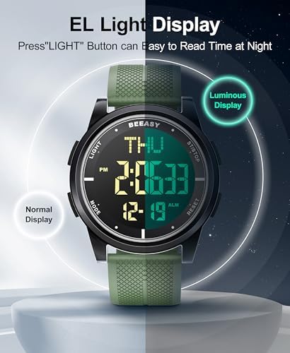 Beeasy Digital Watch Waterproof with Stopwatch Alarm Countdown Dual Time, Ultra-Thin Super Wide-Angle Display Digital Wrist Watches for Men Women