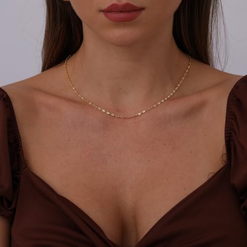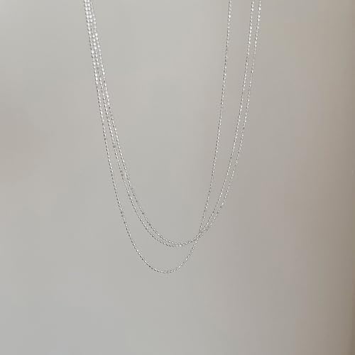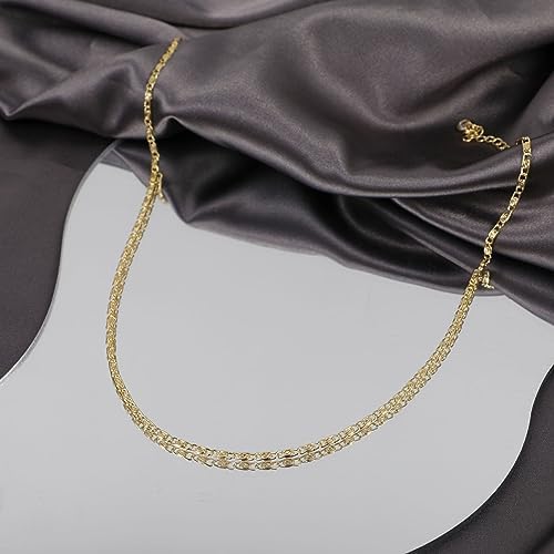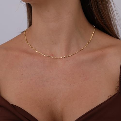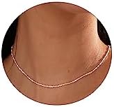 BERISO 14K Gold/Silver Plated Satellite Choker Shining Dots Station Box Chain 3 Blue Beads Sparkle Chain Necklace Open Hearts Open Stars Link Chain Exquisite Jewelry Gifts for Women Mom