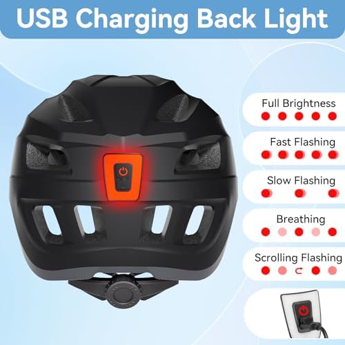 Bike Helmet with LED for Adults Lightweight Bicycle Helmet with Rechargeable USB Light Mountain Helmet for Women,Mountain Bike Helmets for Men Road Recreational Cycling Helmet…
