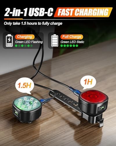 Bike Lights, 6+4 Modes Rechargeable Type-C Bike Light for Night Riding, Anti-Dazzle High Lumen LED Bike Lights Front and Rear, Bicycle Light Set Front and Back for Kids, Cycling, Biking, Road