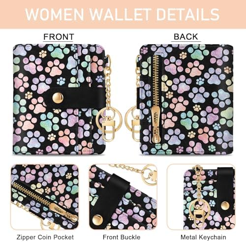 Black Cat Floral Rfid Women Wallet, Small Slim Thin Credit Card Wallet, PU Leather Bifold Cash Wallet, Zipper Coin Pocket & ID Window, Female Ladies Teen Girls Girly Wallet