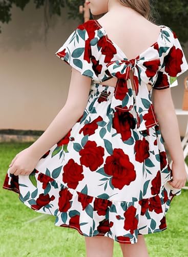 blibean Girls Summer Tie Back Dress Tween Kids Off Shoulder Dresses Size 4-13 Years