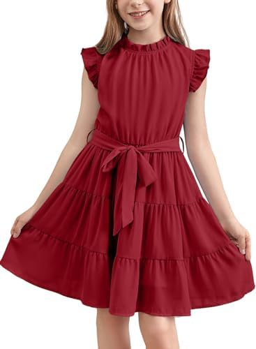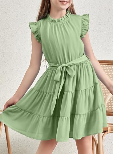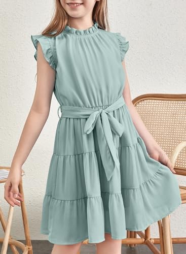 blibean Tween Girls Elegant Dresses Kids Summer Ruffle Sleeve Dress Size 4-15 Years Old